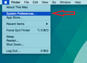 مطابق تصویر زیر بر روی Apple در گوشه تصویر ، کلیک کرده و از زیرمنوی آن گزینه System Preferences را انتخاب کنید.